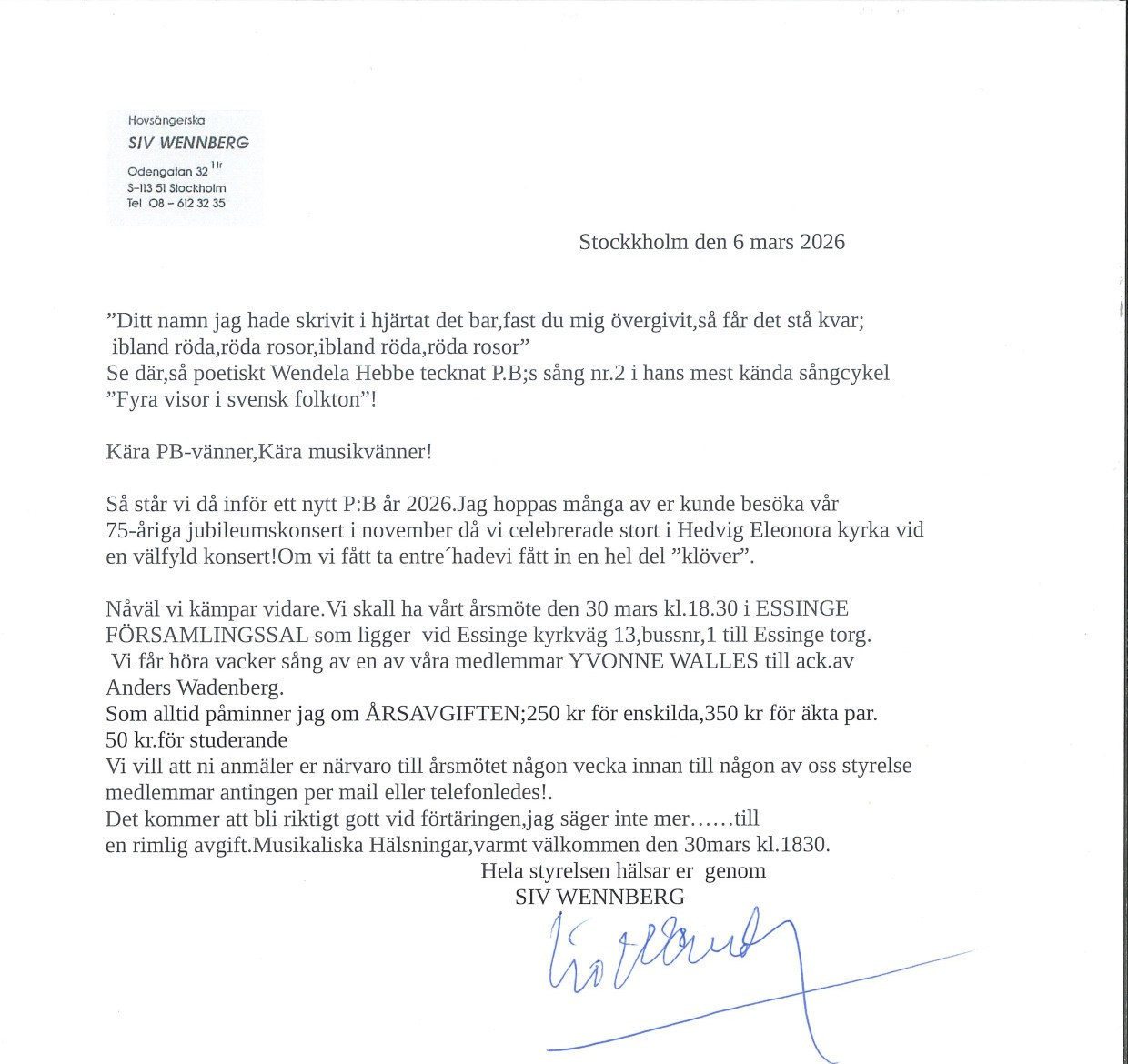 Ordförande Siv Wennberg, hovsångerska